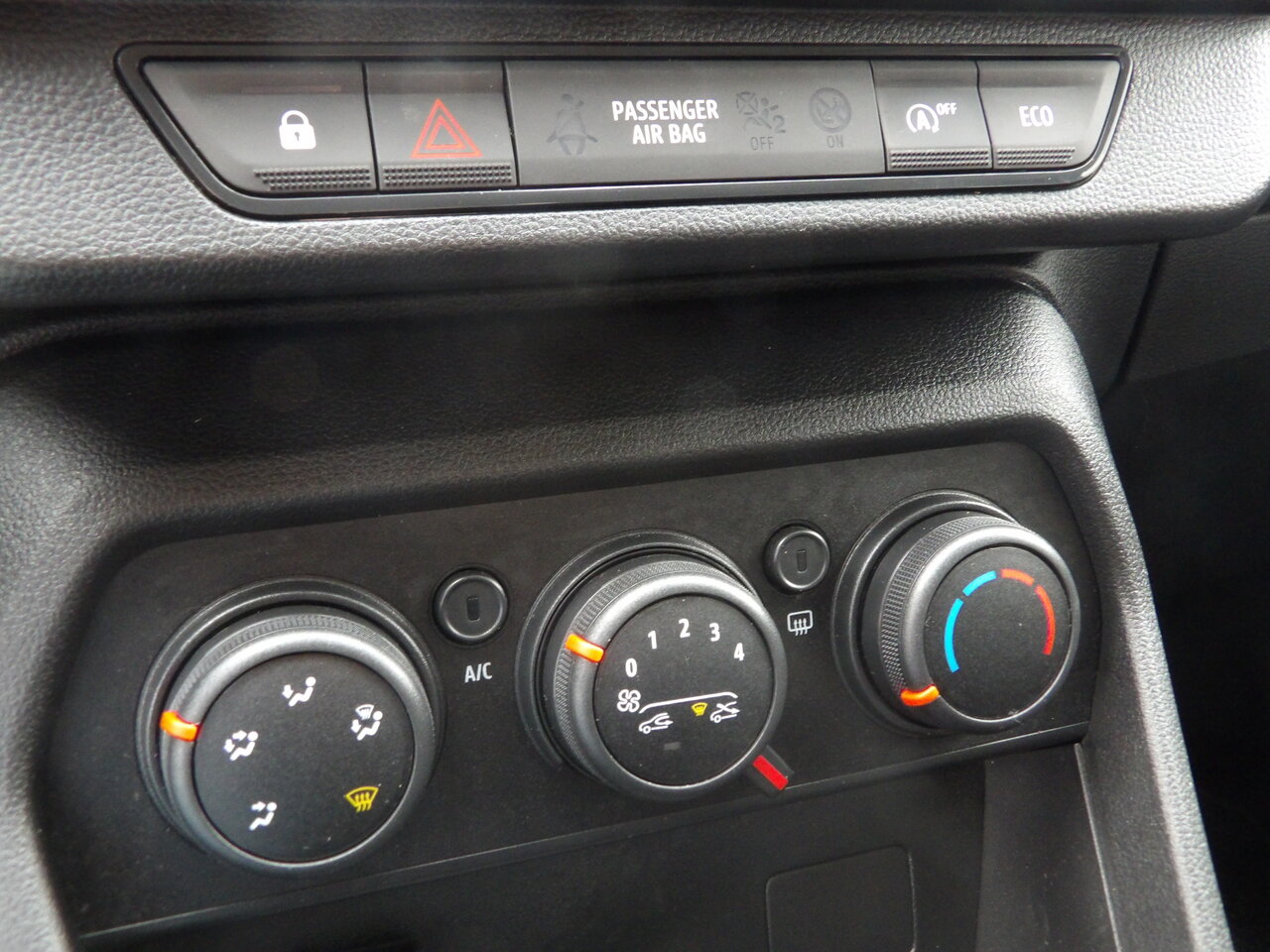 Het interieur is verrassend compleet uitgerust met een lederen stuurwiel, een in hoogte verstelbare bestuurderszetel en een centrale armsteun voor extra comfort. De manuele airconditioning zorgt voor een aangenaam klimaat in alle seizoenen en de elektrische ramen voor verhogen het gebruiksgemak voor alle inzittenden.