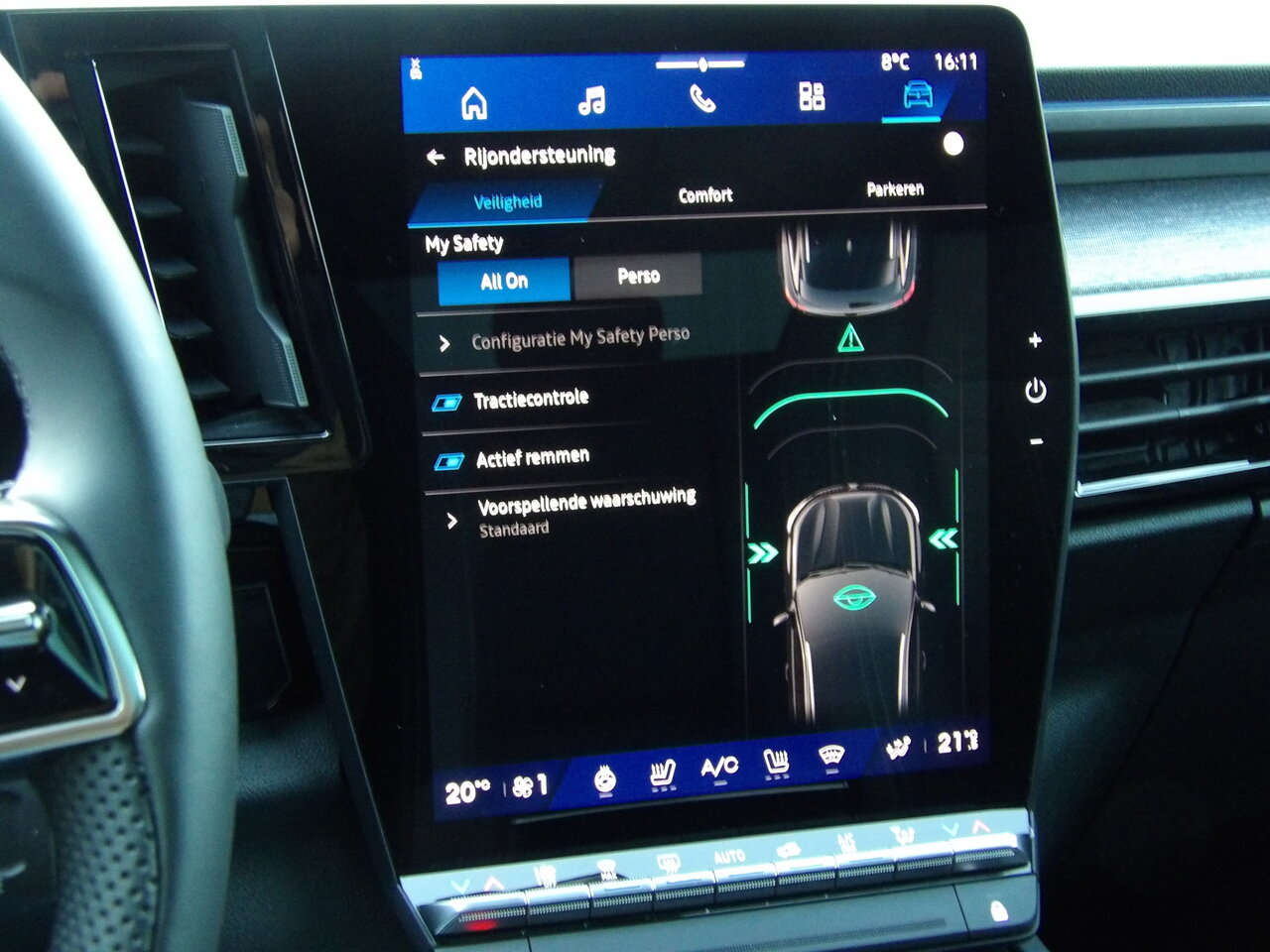 De wagen is uitgerust met adaptieve cruise control, automatische verlichting, automatisch grootlicht en een regensensor. Parkeren wordt eenvoudiger dankzij de parkeerradar voor en achter en de achteruitrijcamera.