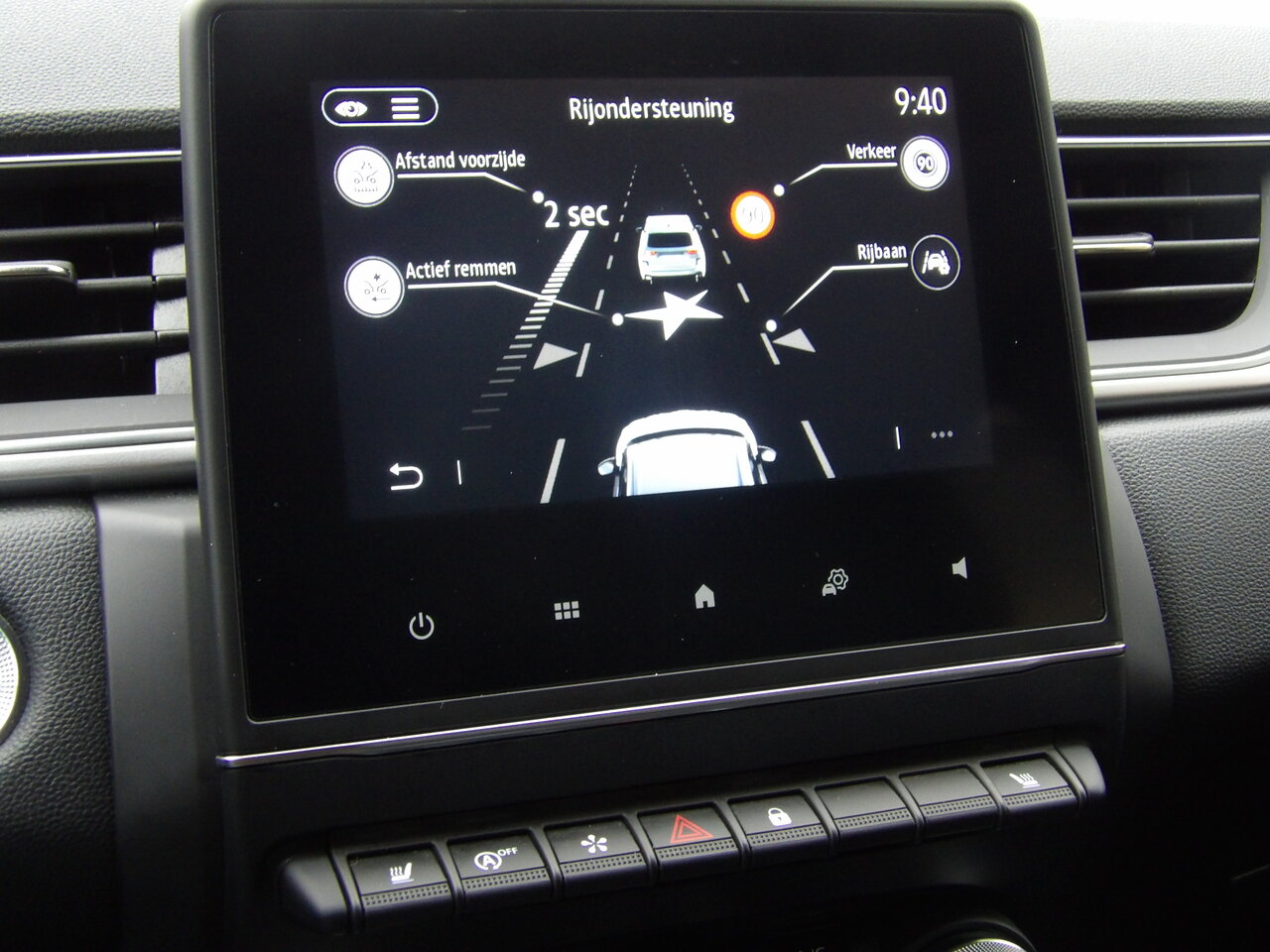 Op vlak van veiligheid is deze Captur een echte referentie. Hij is uitgerust met ESP en Hill Assist, AEBS met voetgangersdetectie voor automatische noodremming, verkeersbordherkenning, Lane Keeping Assist die ingrijpt wanneer nodig. De afstandradar en cruise control houden altijd veilige afstand, Parkeren wordt kinderspel dankzij parkeersensoren voor- en achteraan in combinatie met de achteruitrijcamera.