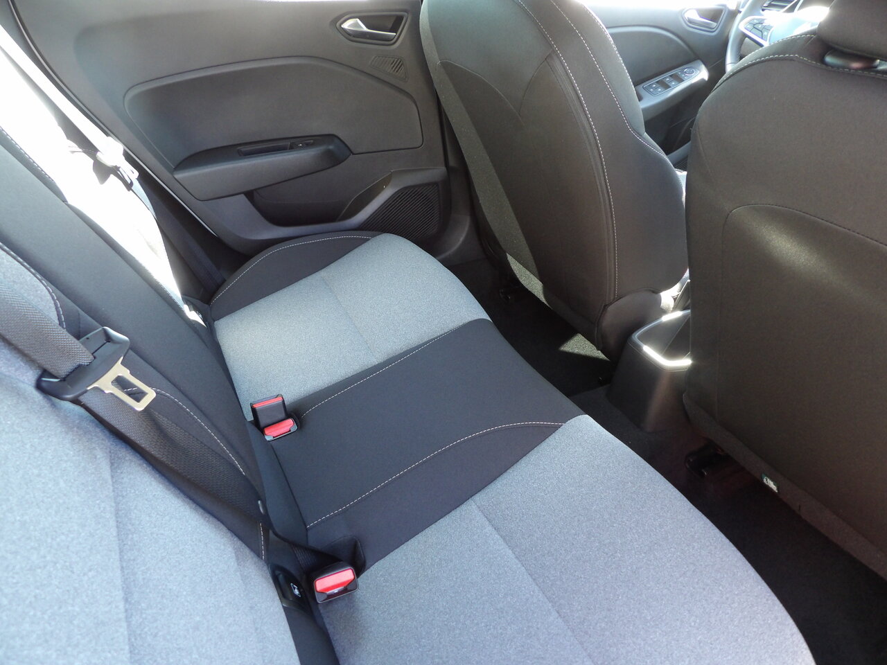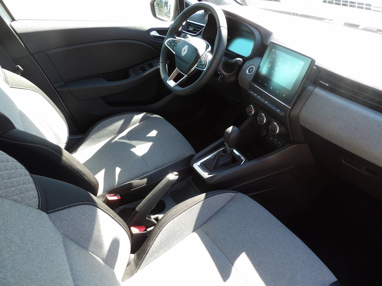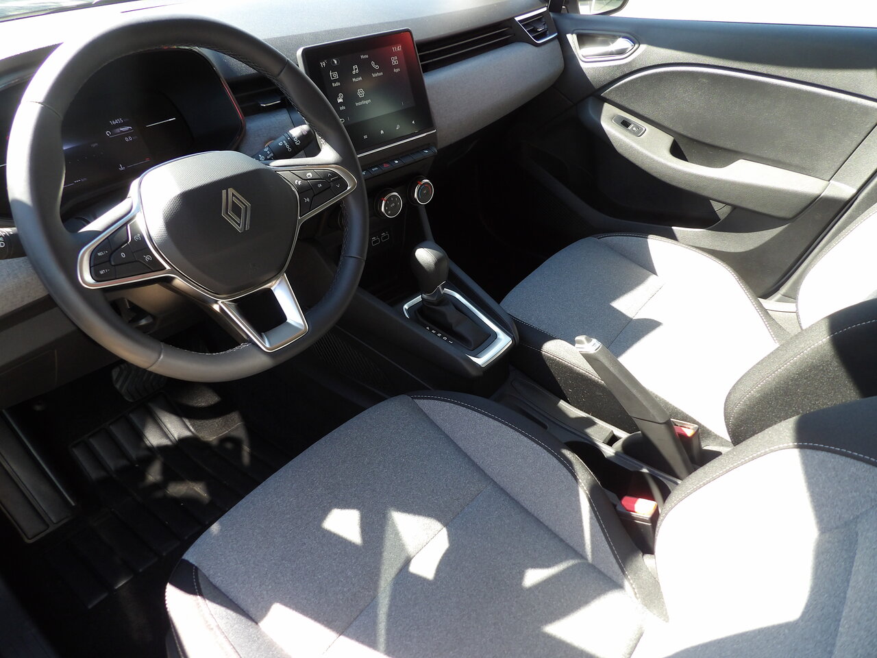 Binnenin biedt deze Clio een comfortabel en ergonomisch interieur met een lederen stuurwiel, een in hoogte verstelbare bestuurderszetel en elektrische ramen voor en achter. De airconditioning zorgt voor een aangename temperatuur tijdens elke rit, terwijl zetelverwarming extra comfort biedt tijdens koudere dagen.