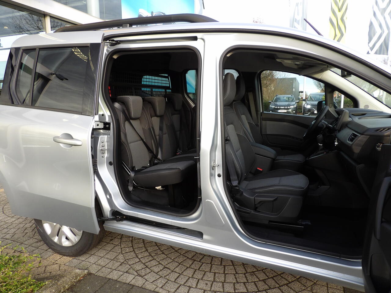 De praktische eigenschappen maken deze Kangoo nog aantrekkelijker: dubbele zijschuifdeuren, dakrails, elektrisch bediende ramen voor en achter, elektrische spiegels, LED-koplampen, mistlampen, parkeersensoren voor en achter, start-stop systeem, Eco-modus en centrale deurvergrendeling. Een uitneembaar scheidingsrek in de bagageruimte zorgt voor extra flexibiliteit.
