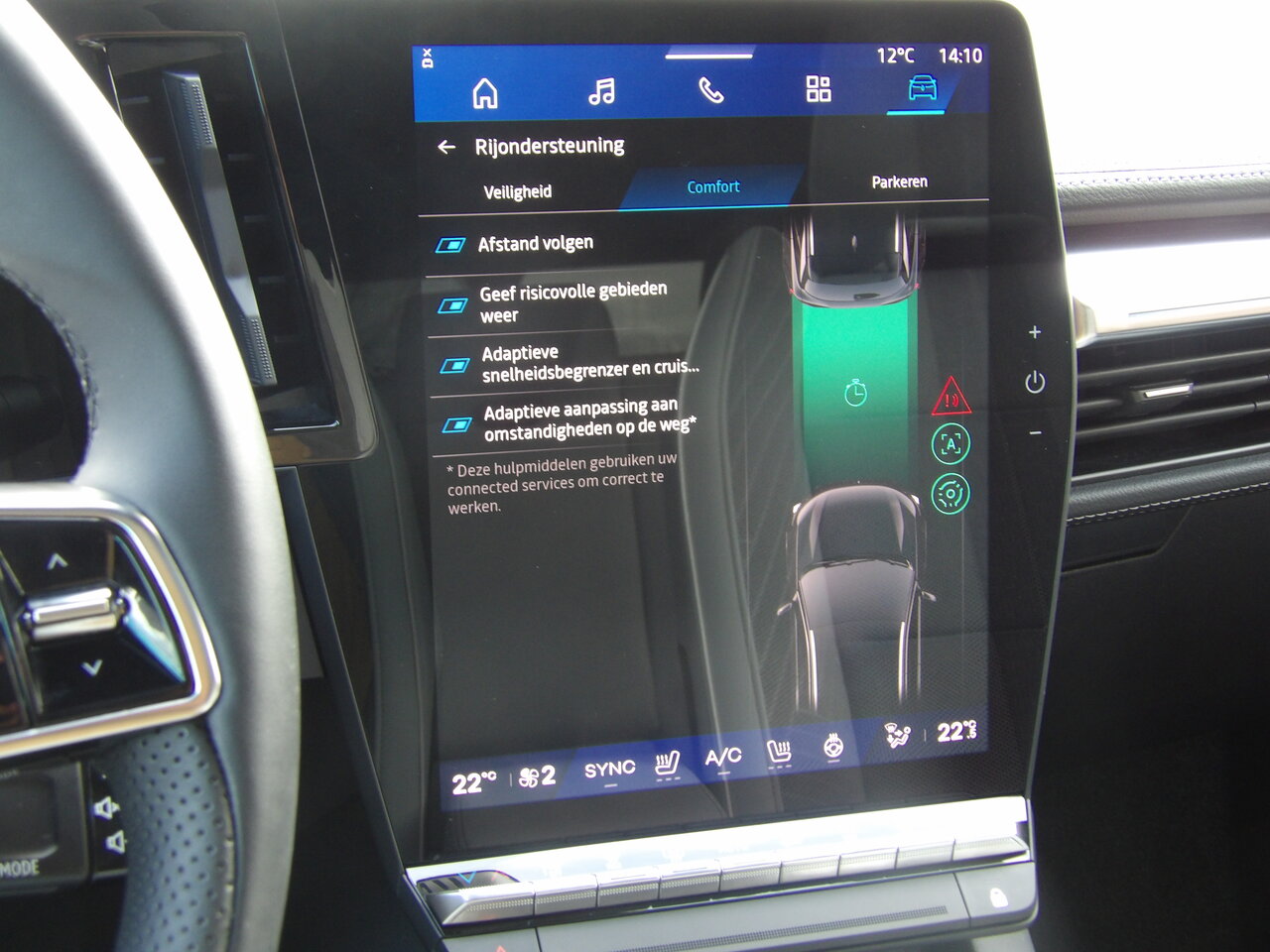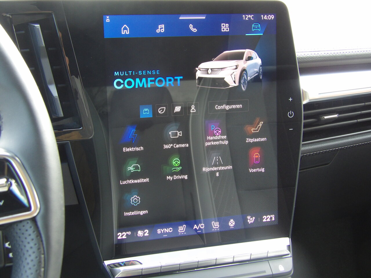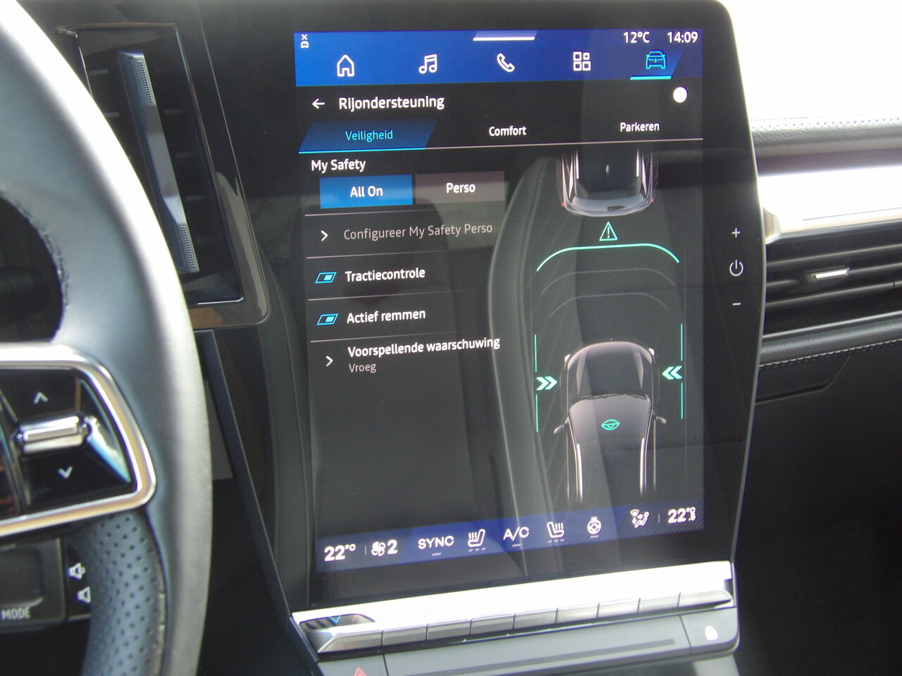 Deze Scénic is uitgerust met een zeer uitgebreid pakket aan veiligheidssystemen. Denk aan adaptieve cruise control met rijstrookcentrering (Active Driver Assist), dodehoekdetectie met actieve assistentie, waarschuwing voor achterliggend verkeer met noodstop en een systeem voor veilig uitstappen van inzittenden.