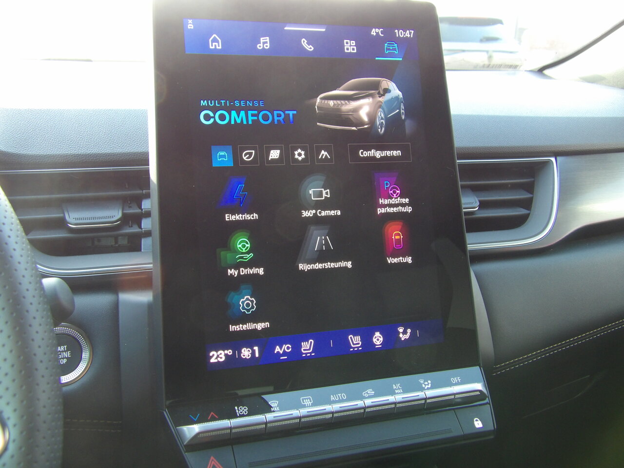 Ook het comfort is indrukwekkend compleet. Automatische airco, elektrische ruiten voor en achter, elektrisch inklapbare en verwarmde spiegels, parkeersensoren rondom, een 360° parkeercamera, achteruitrijradar, en de handenvrije instap- en startkaart zorgen voor dagelijks gebruiksgemak. De elektronische parkeerrem, hellingstartassistent, ECO-modus en het Renault Multi-Sense systeem – waarmee u rijmodus en interieursfeer volledig personaliseert – dragen bij aan een intuïtieve en ontspannen rijervaring.