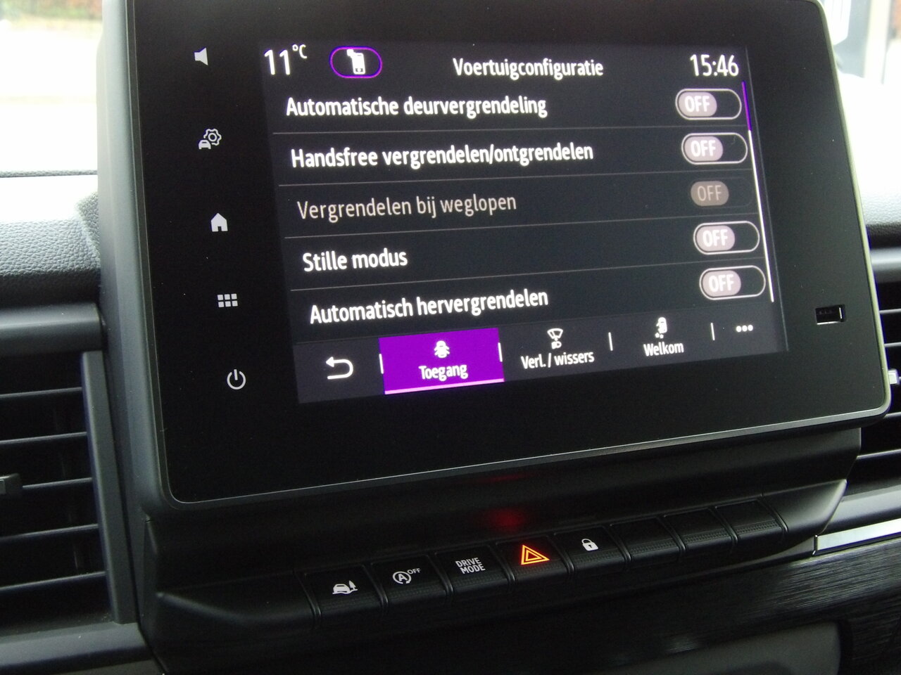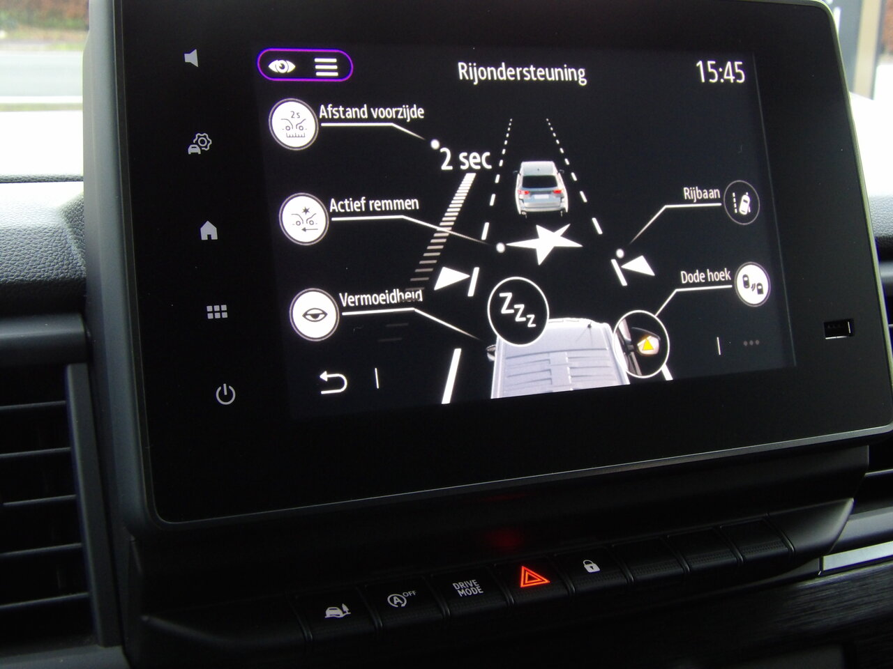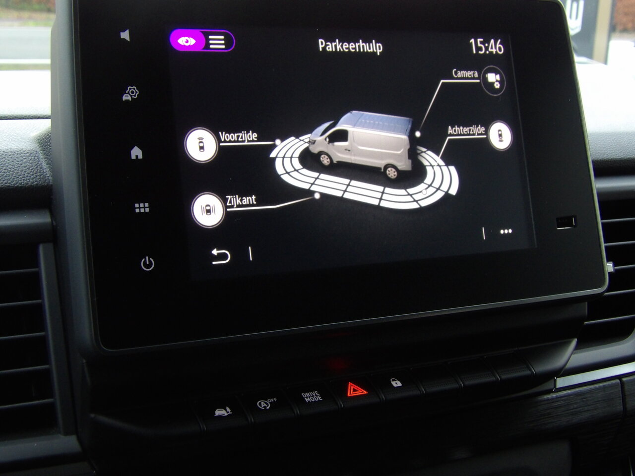 Binnenin biedt de Trafic een verrassend aangenaam en doordacht interieur. Het lederen stuurwiel, de in hoogte regelbare bestuurderszetel en de automatische airconditioning zorgen voor een personenwagengevoel, terwijl de grote opbergvakken en het afsluitbare handschoenkastje voor extra functionaliteit zorgen. Het Easylink-multimediasysteem met 7” touchscreen, navigatie, Bluetooth, USB-aansluiting, radio met stuurbediening, Apple CarPlay en Android Auto houdt u altijd verbonden en maakt elke rit overzichtelijk en efficiënt.